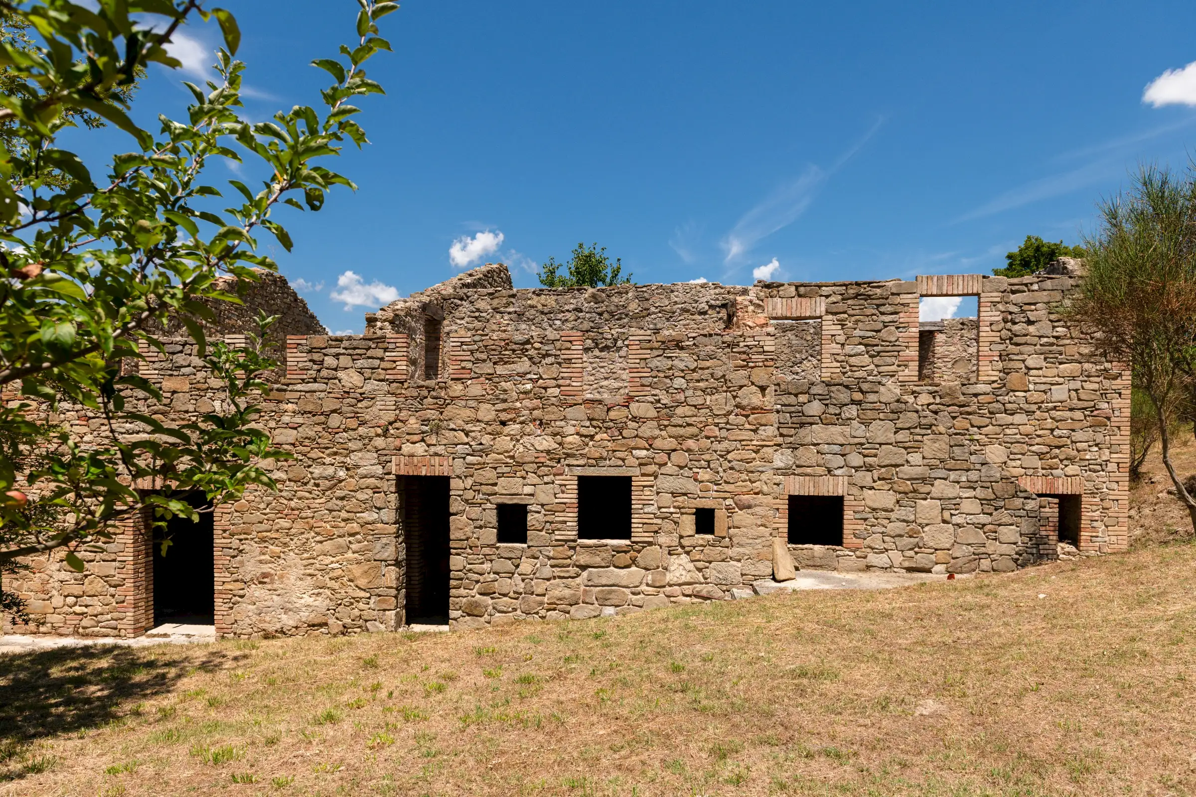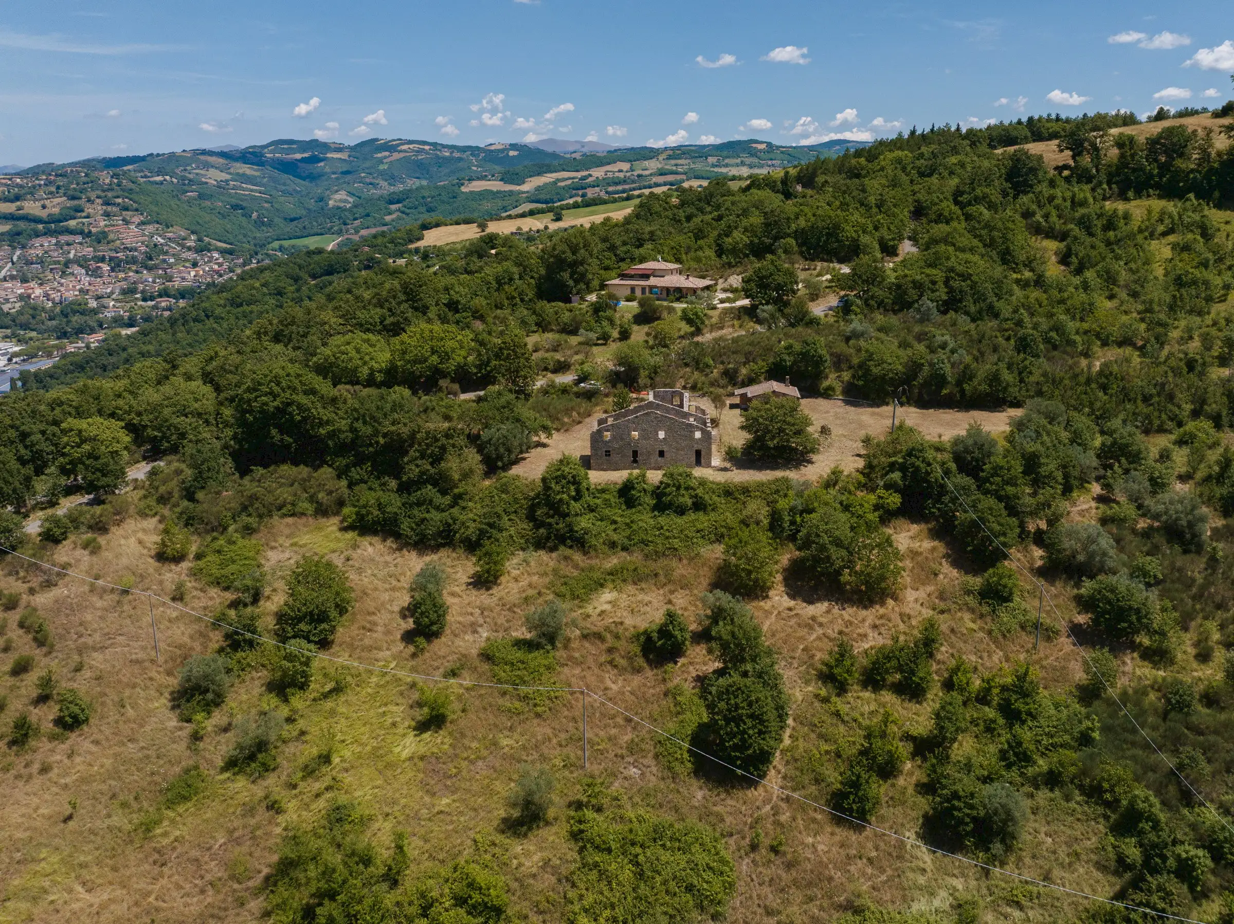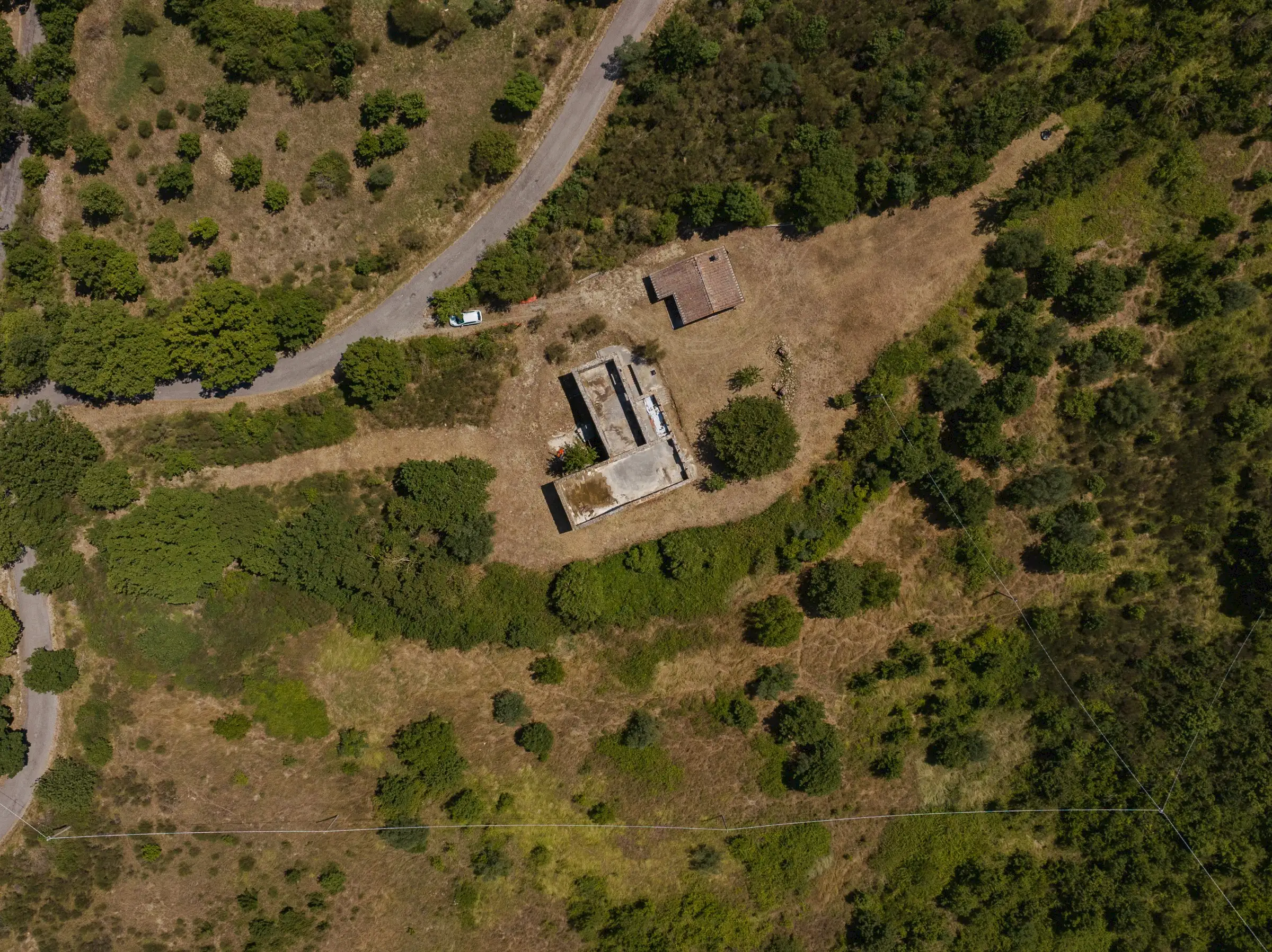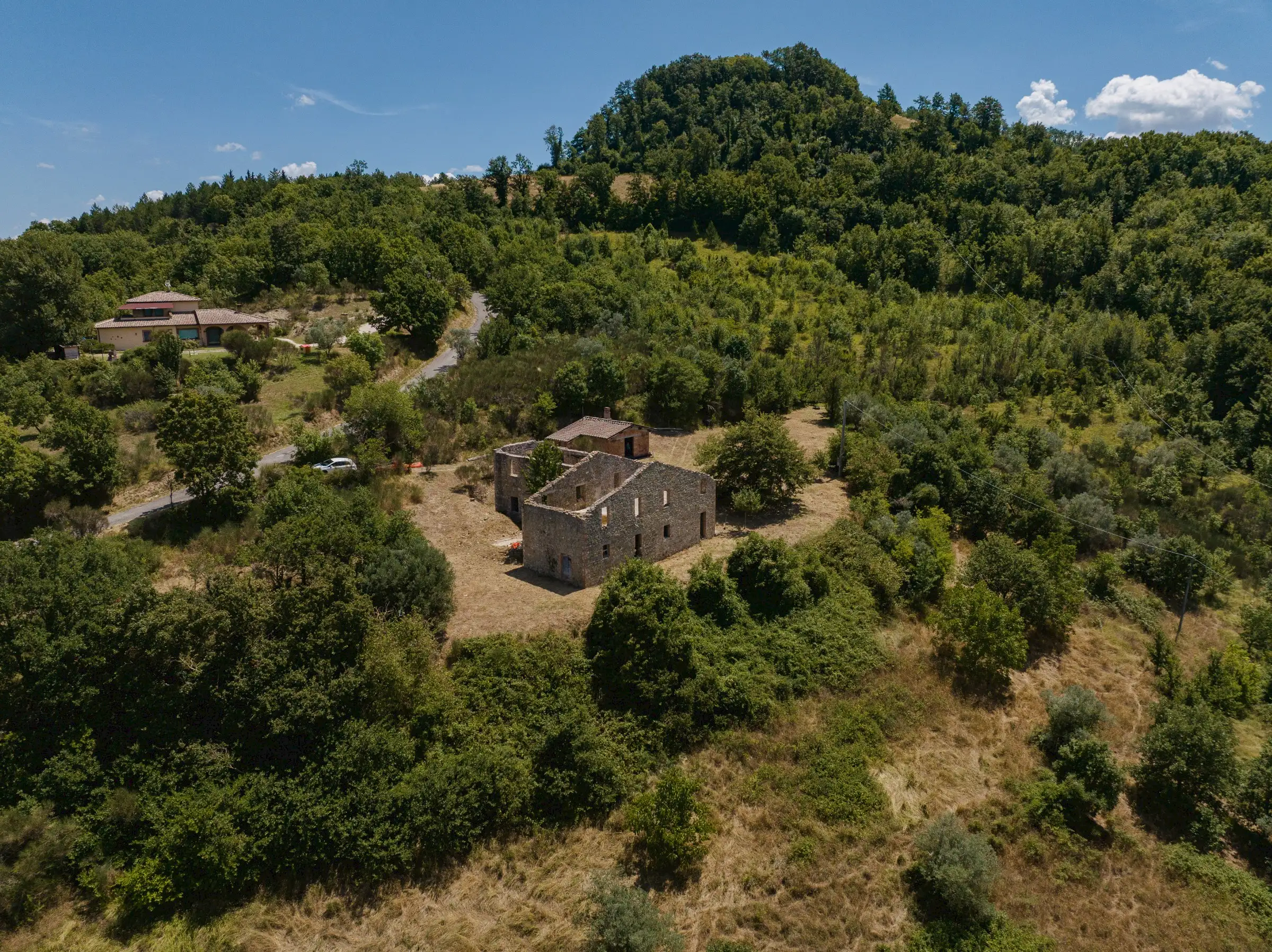 Designed to follow the natural flow of the land, the expert masonry work that has restored all the perimeter walls and part of the interior suggests that this property can become a masterpiece of modern architecture, seamlessly blending into the landscape, or find its place in a more classical completion.