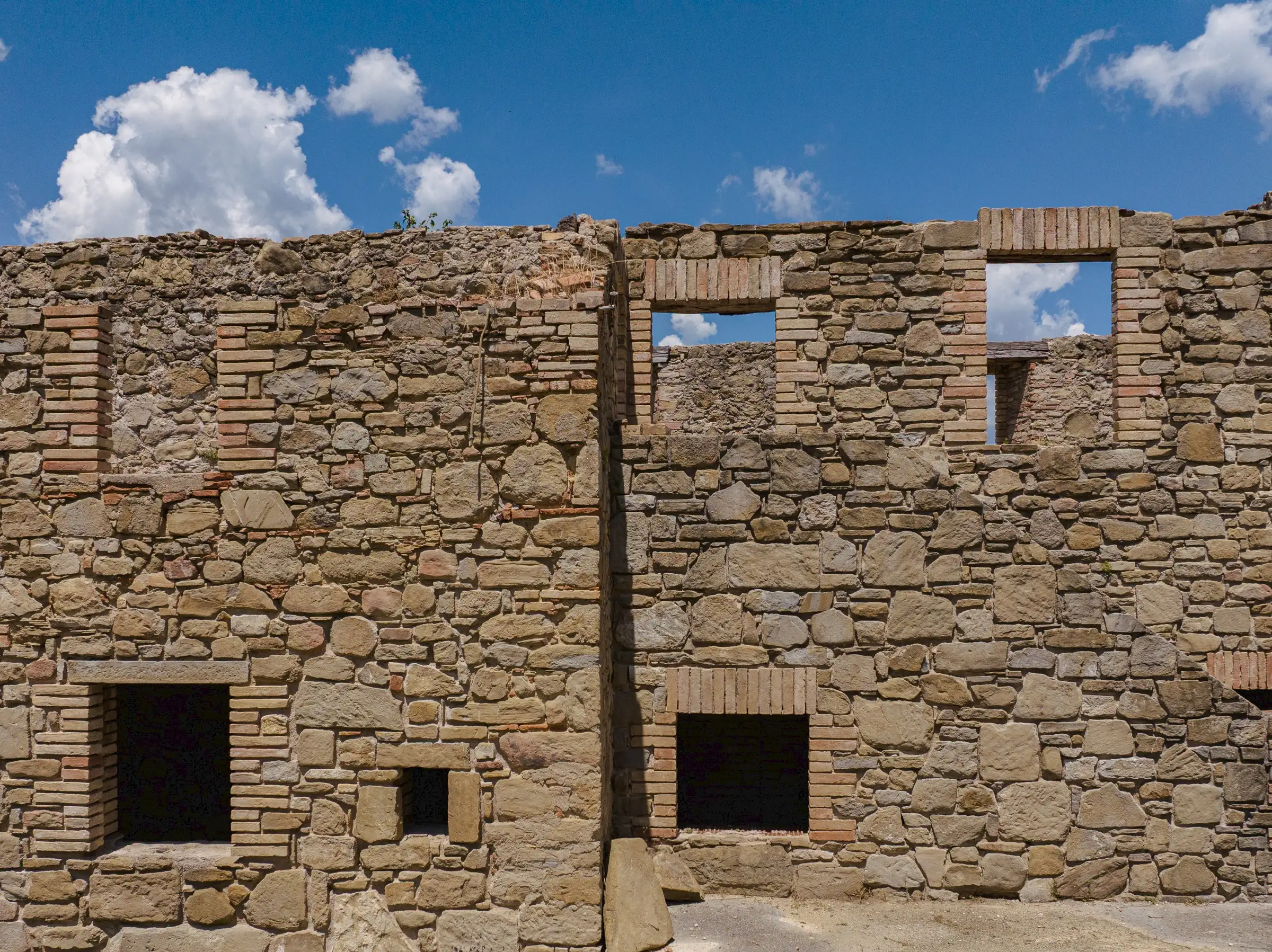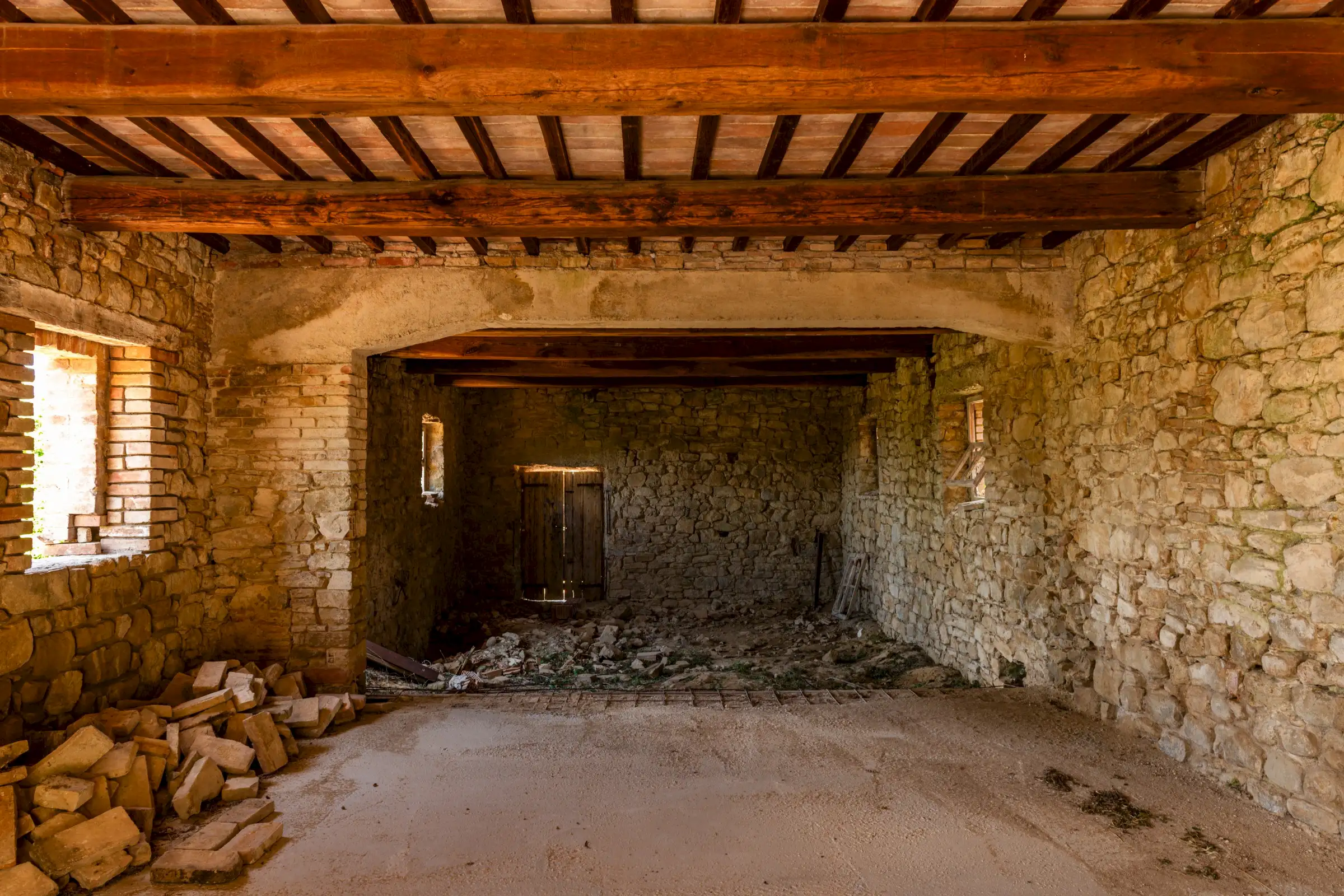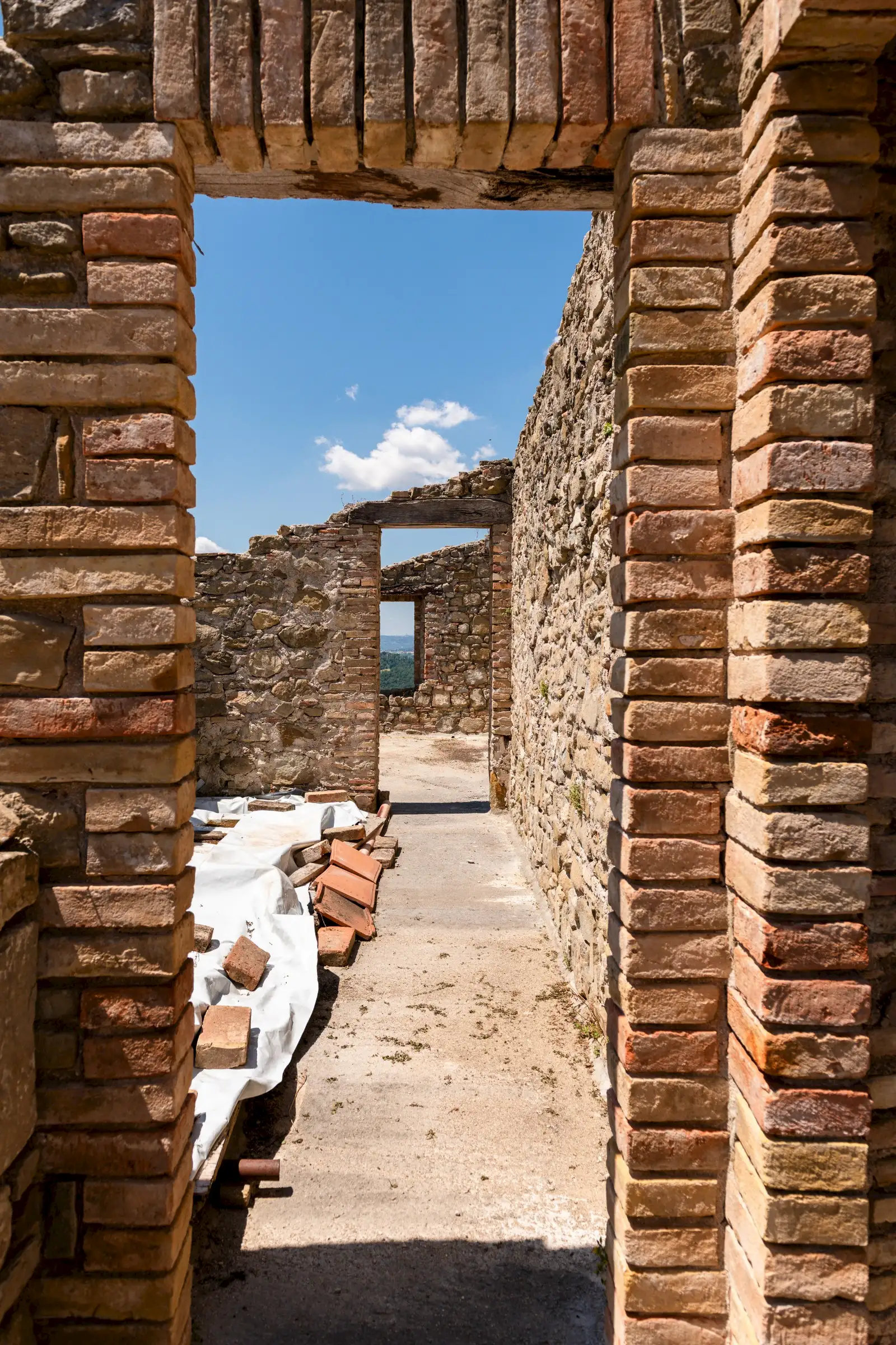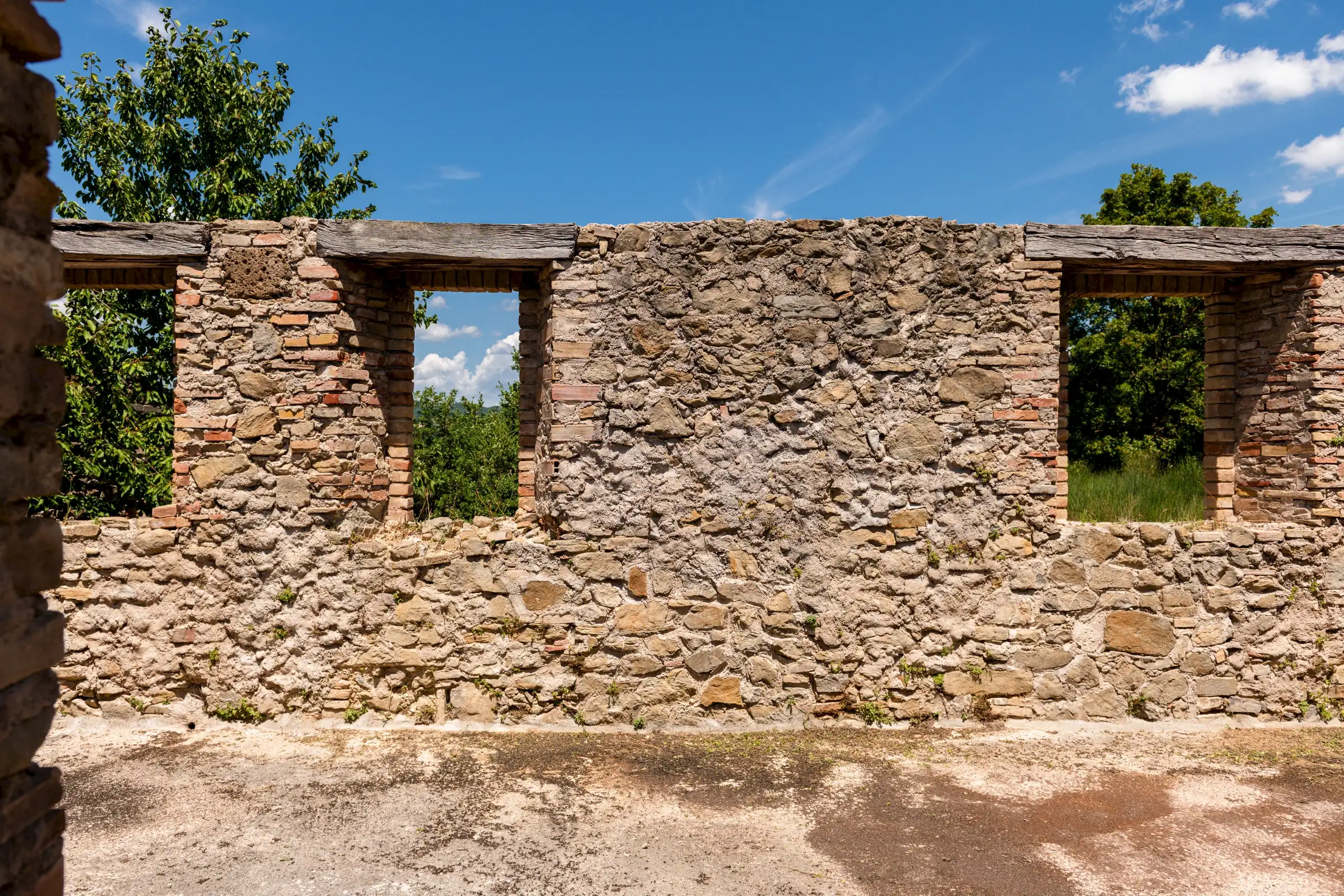 Designed to follow the natural flow of the land, the expert masonry work that has restored all the perimeter walls and part of the interior suggests that this property can become a masterpiece of modern architecture, seamlessly blending into the landscape, or find its place in a more classical completion.