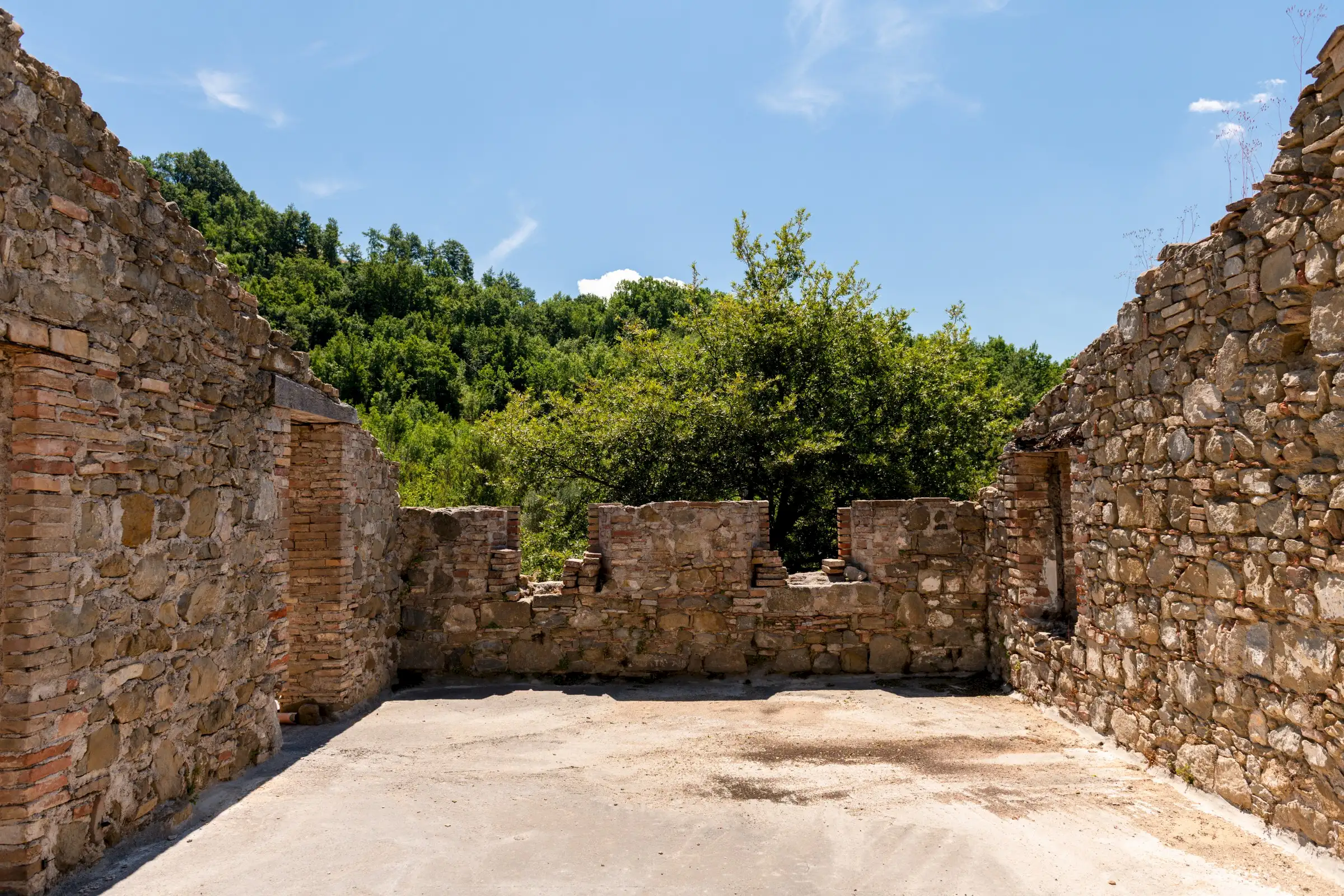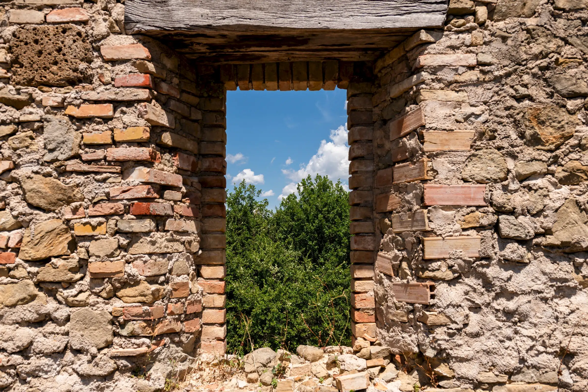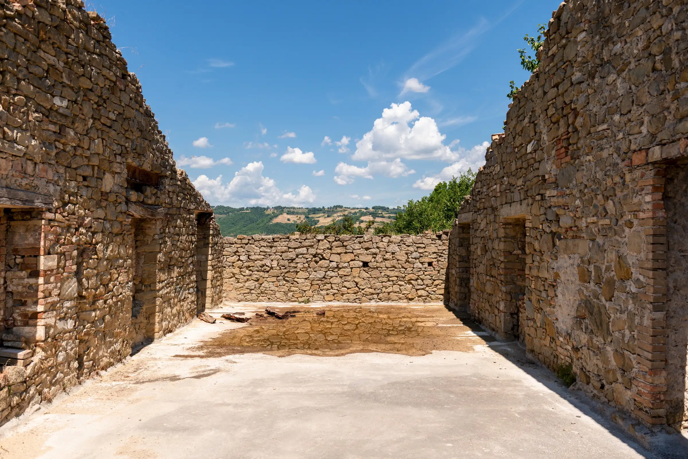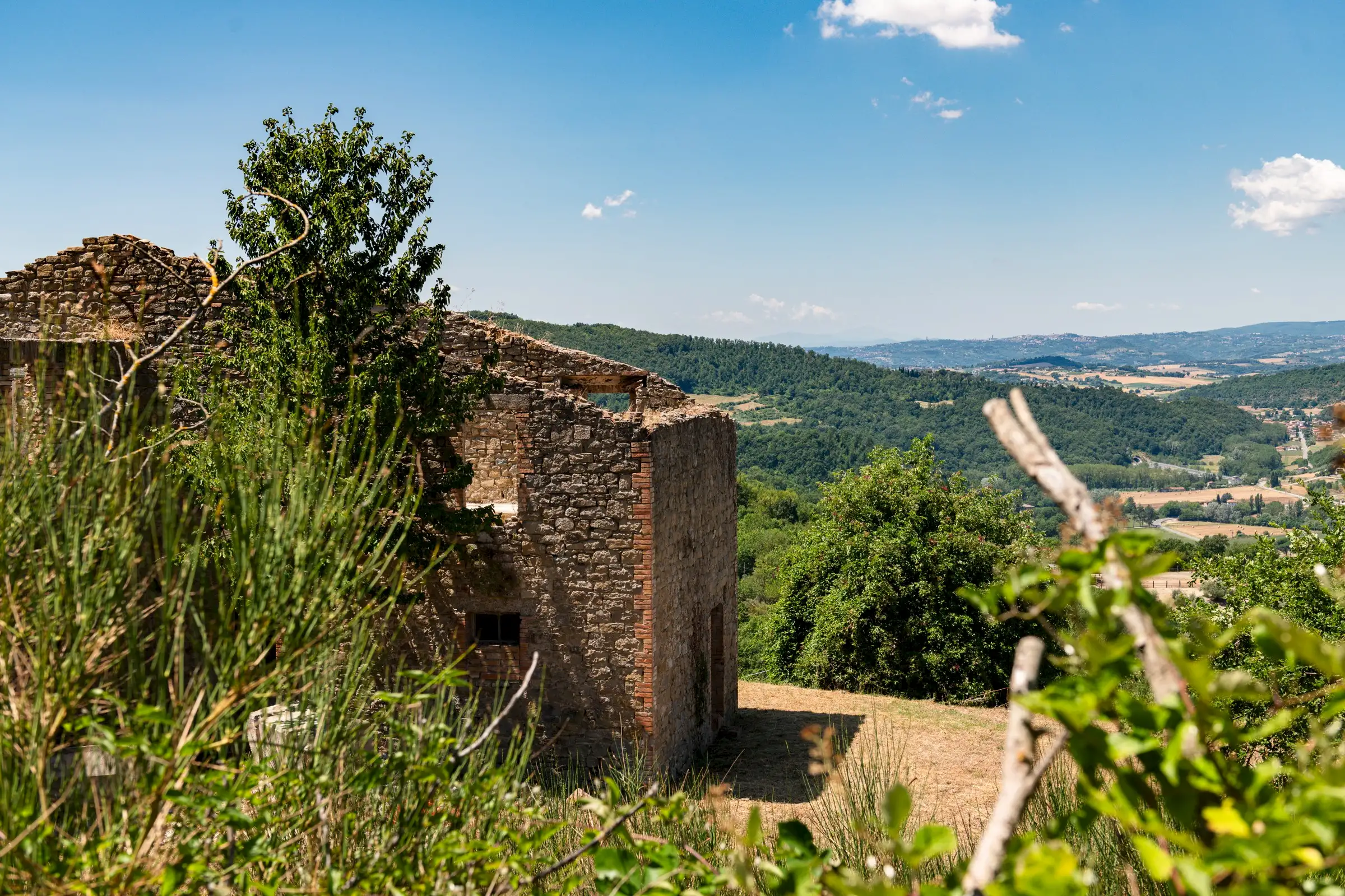 Designed to follow the natural flow of the land, the expert masonry work that has restored all the perimeter walls and part of the interior suggests that this property can become a masterpiece of modern architecture, seamlessly blending into the landscape, or find its place in a more classical completion.