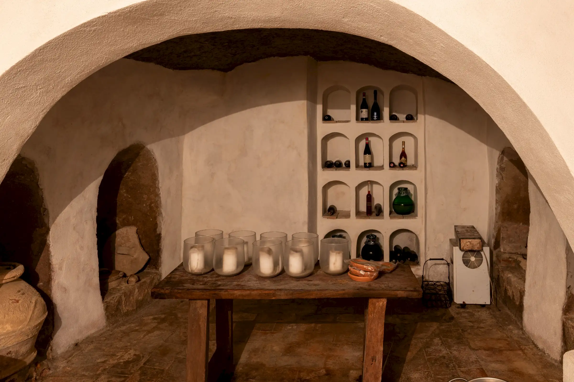 The manor house is surrounded by 15 hectares of woodland and an olive grove of 600-700 trees. There’s a 400m² walled garden with its own spring and a glasshouse. There are four caves in a rockface, one originally served as the mill for the estate and another, the original wine cellar, still houses the ancient casks.