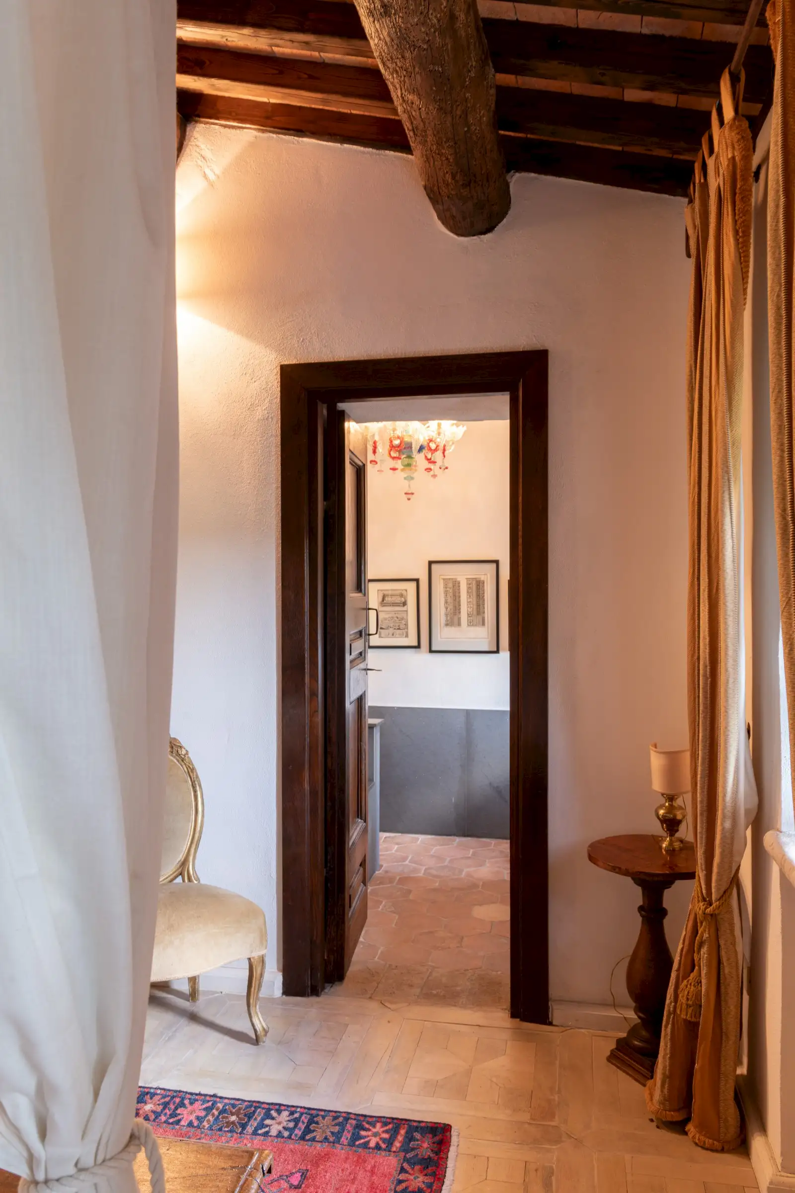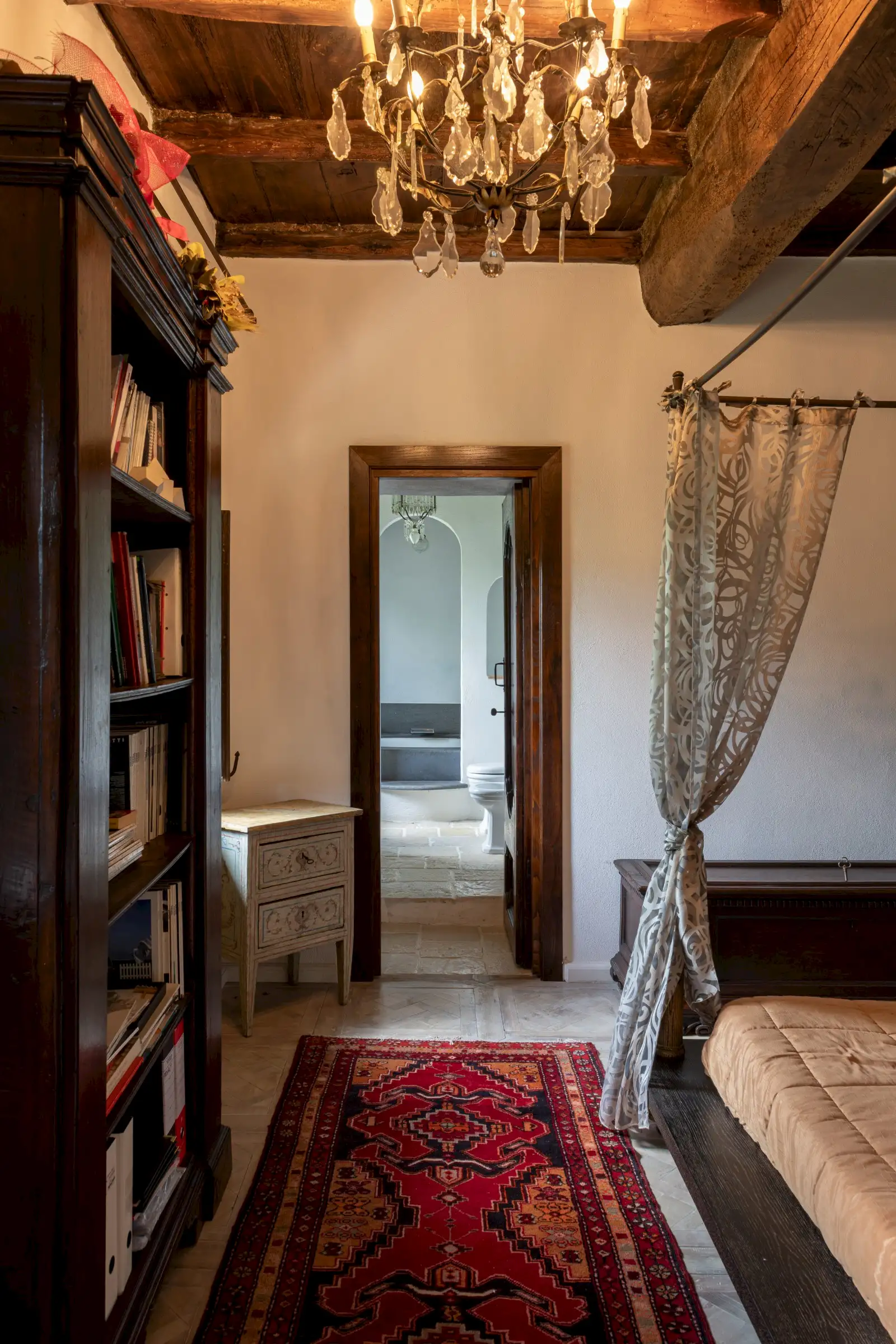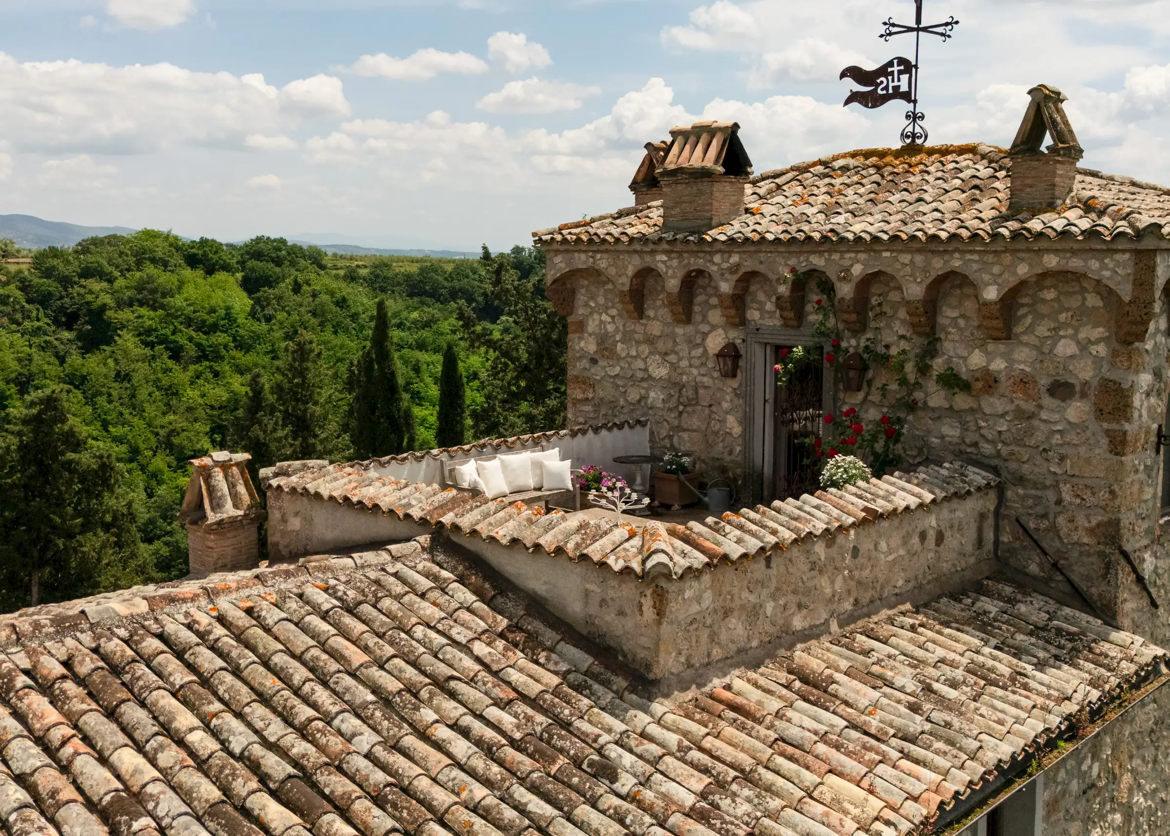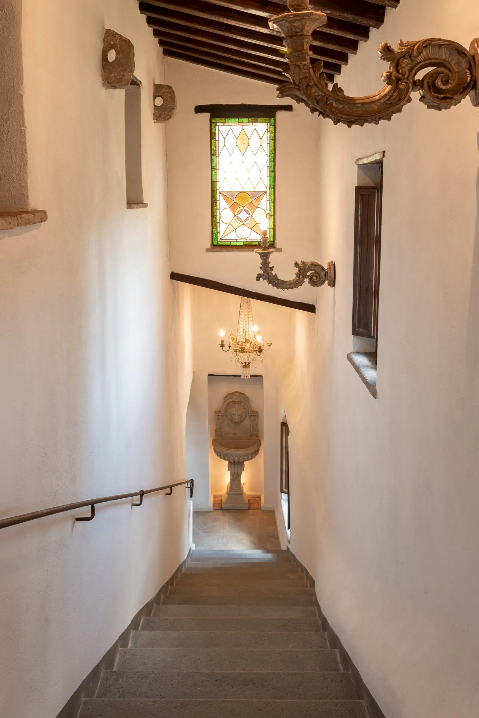 On the top floor there’s a large study that opens onto the tower’s reception room that has incredible panoramic views down the valley. There are three en-suite double bedrooms, a billiard room, a cosy sitting area, two storage cupboards, and an antique stone staircase leading to a mezzanine and a spectacular rooftop terrace.
