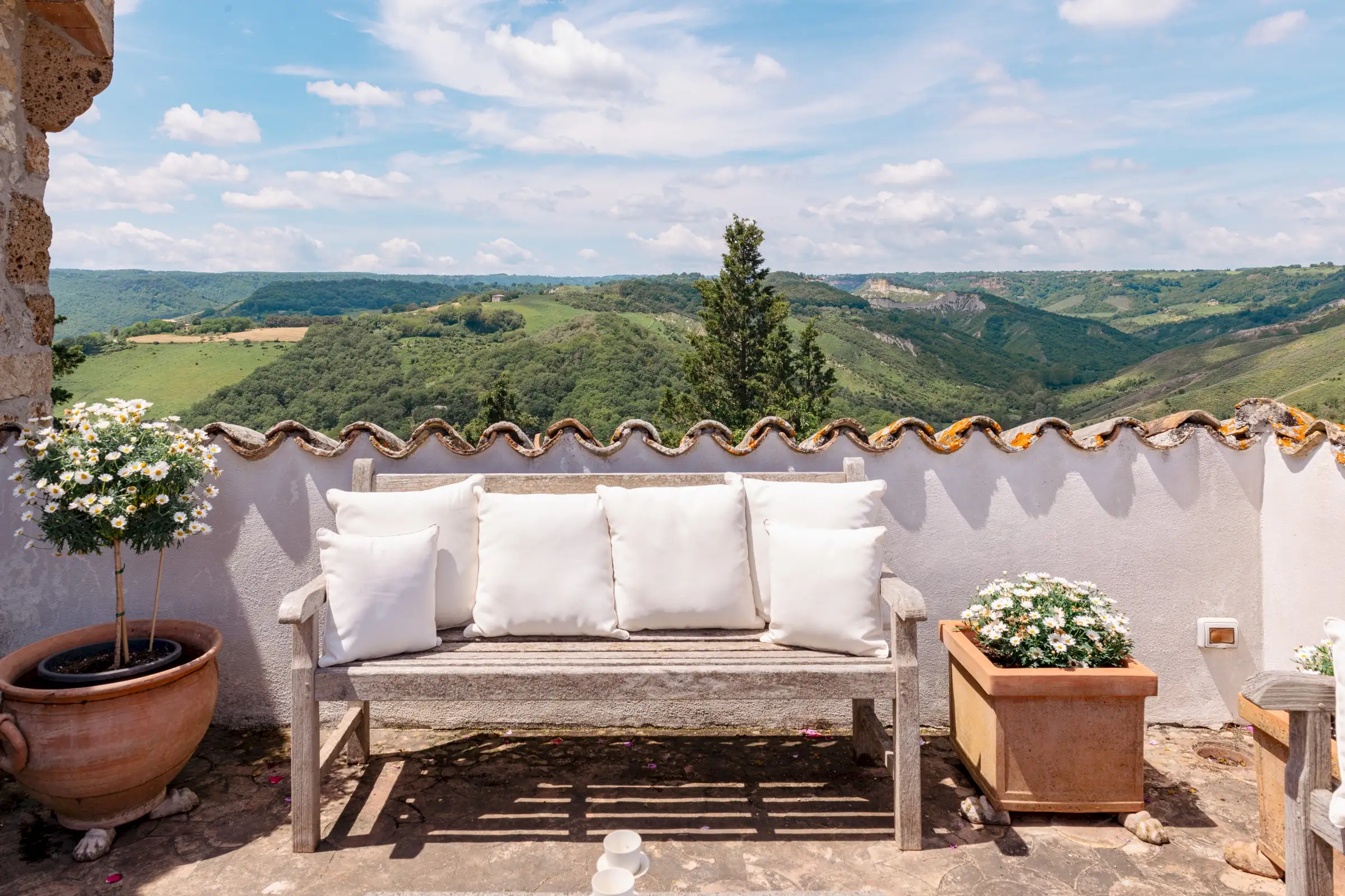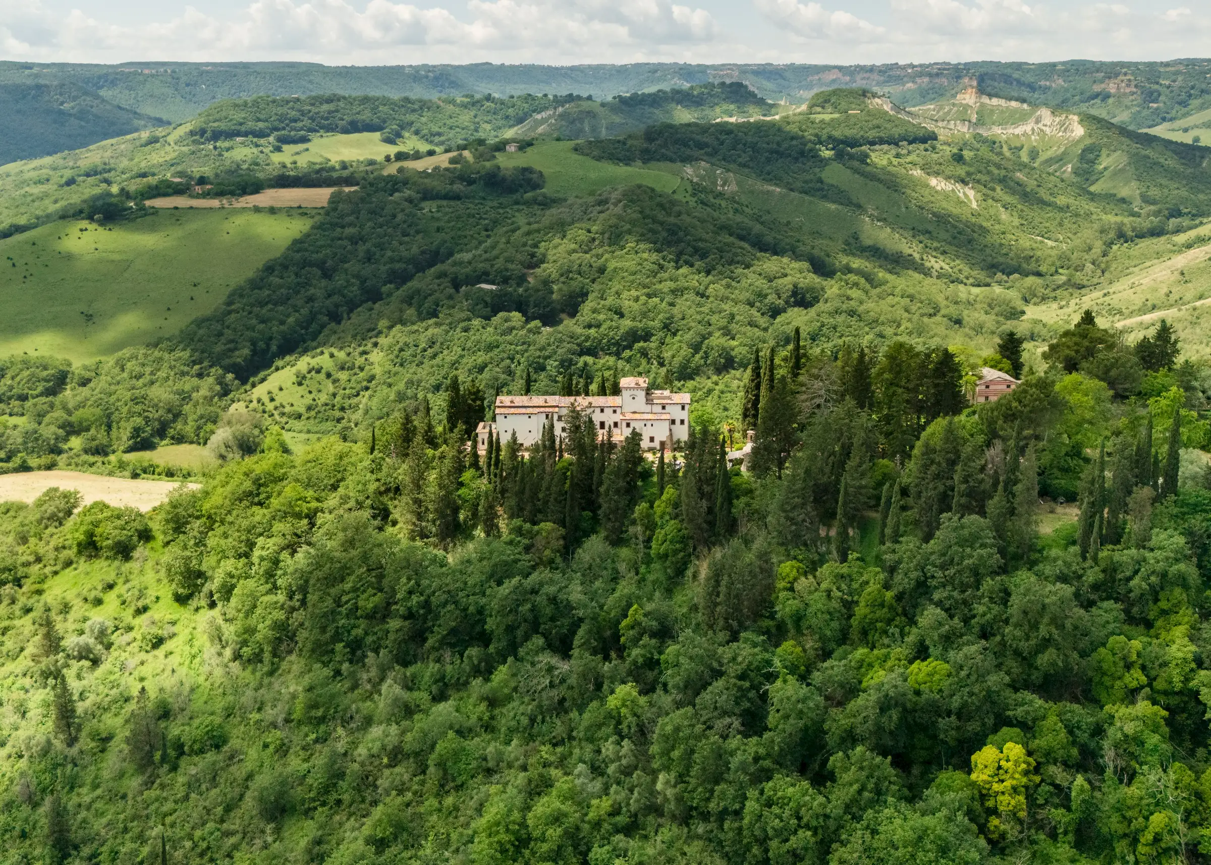 Tucked into glorious countryside where Lazio, Umbria and Tuscany meet, Tenuta Vaiano is only an hour from Rome. This unique historic estate commands incredible panoramic views over the celebrated limestone canyons of the Calanchi National Park and Cività di Bagnoregio, the Etruscan town set high on a rock where ancient kings came to bathe.