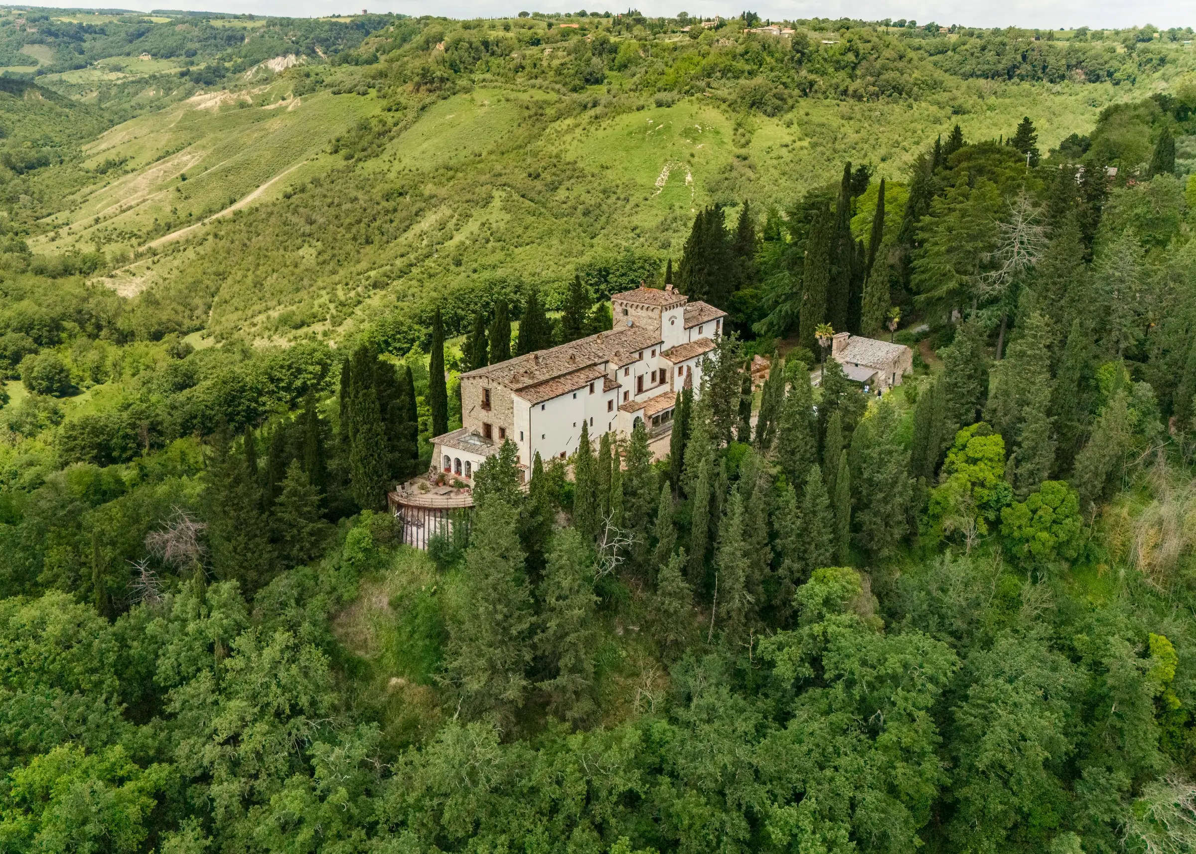 The estate is gloriously secluded, surrounded by two hectares of manicured parkland that includes centuries-old oak and cypress trees, as well as pergolas and gazebos, yet it is only 20km from the medieval Umbrian town of Orvieto, and Florence can be reached in ninety minutes.
