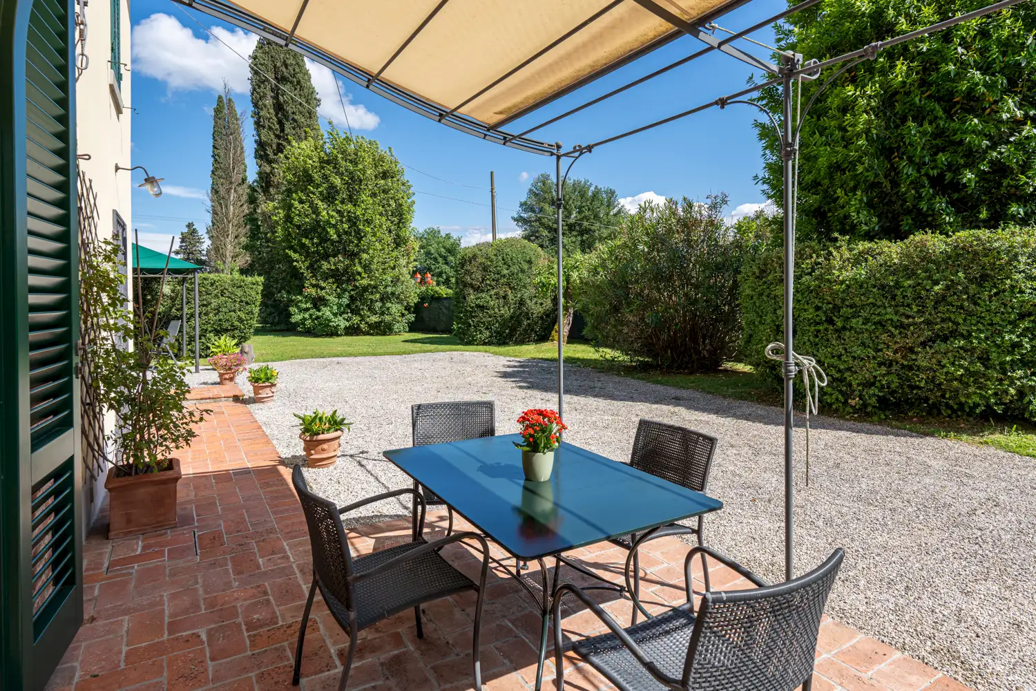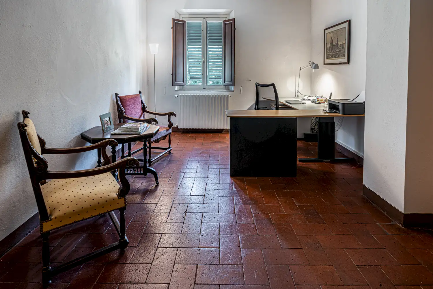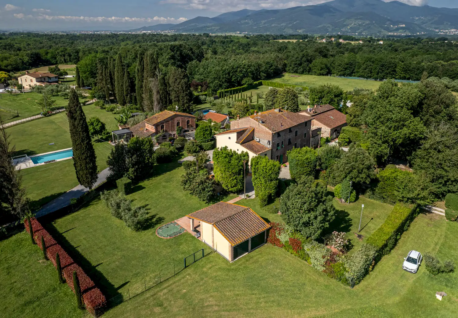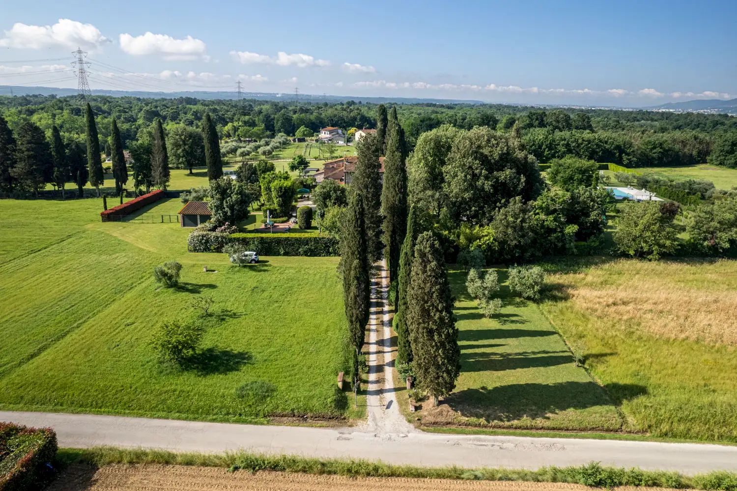 The Villa is based in a quiet area near the town of Orentano. The property is accessed via a beautiful driveway of common cypress trees shared with the other half of the house. Once in front of the house, each property has its own gate that separates the entrances to each private premises. The construction of a swimming pool is allowed, to make Villa Fontine an even more unique place to stay.
