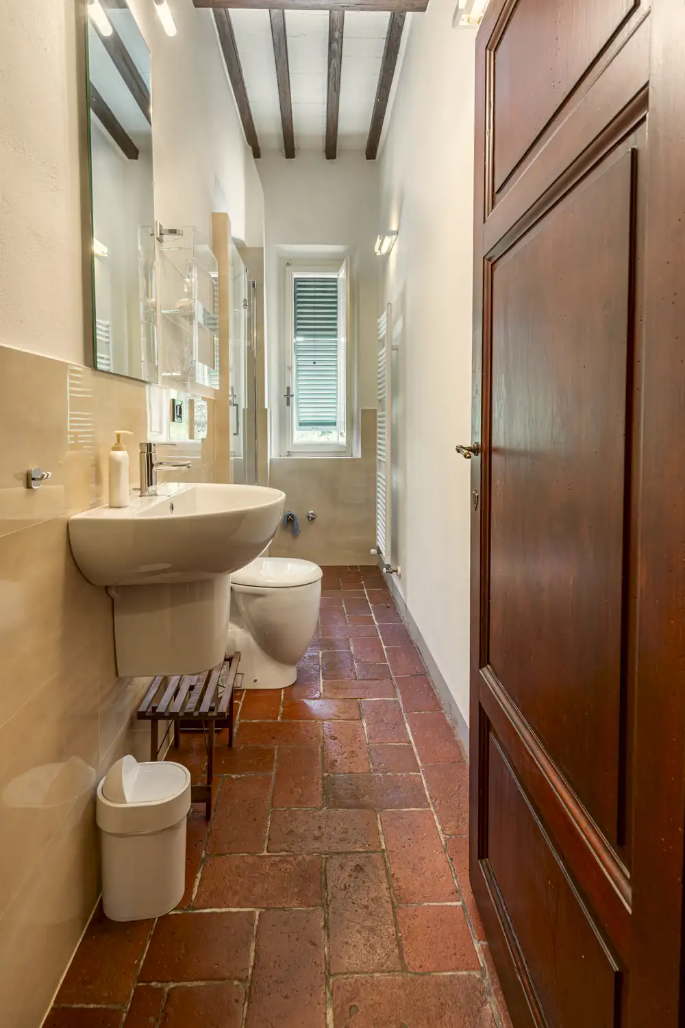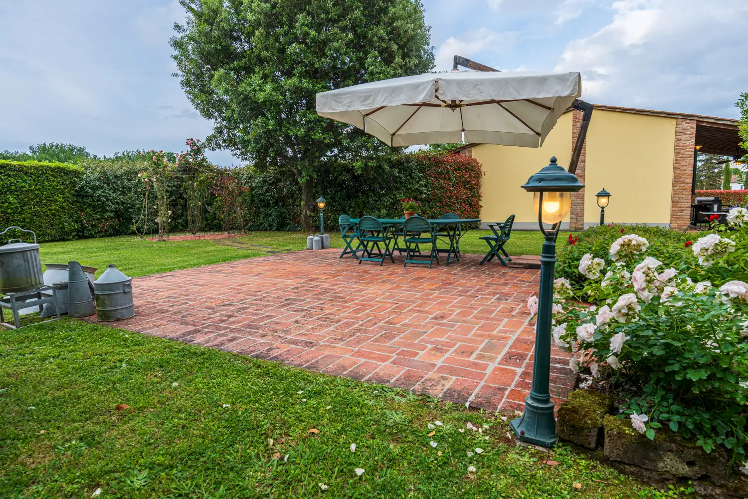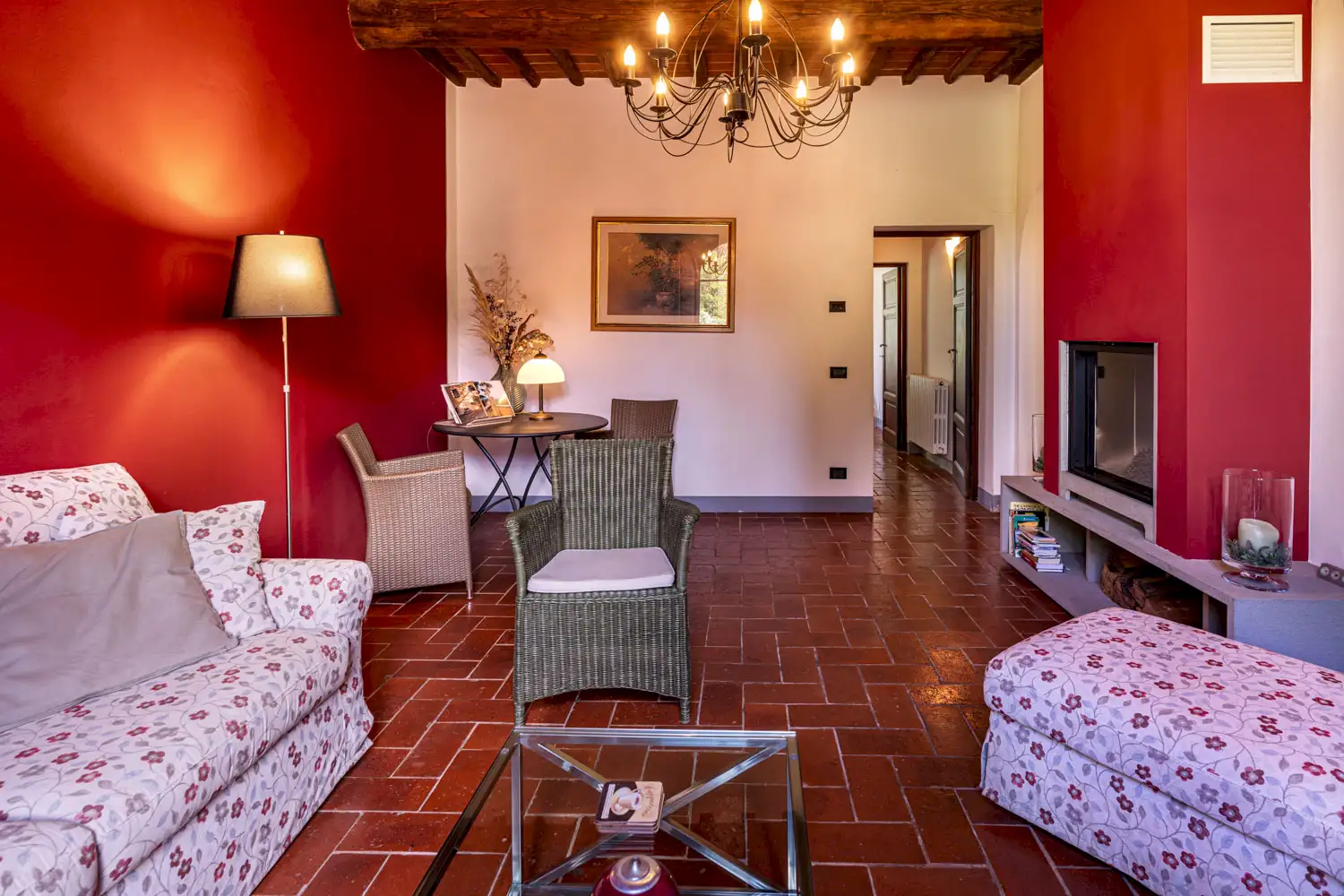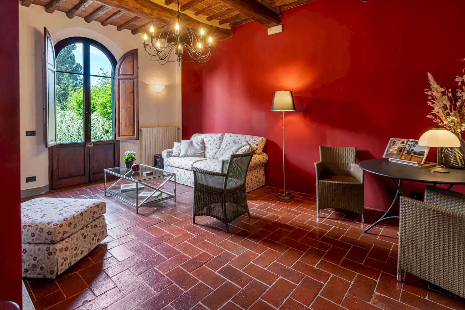 The Villa is based in a quiet area near the town of Orentano. The property is accessed via a beautiful driveway of common cypress trees shared with the other half of the house. Once in front of the house, each property has its own gate that separates the entrances to each private premises. The construction of a swimming pool is allowed, to make Villa Fontine an even more unique place to stay.
