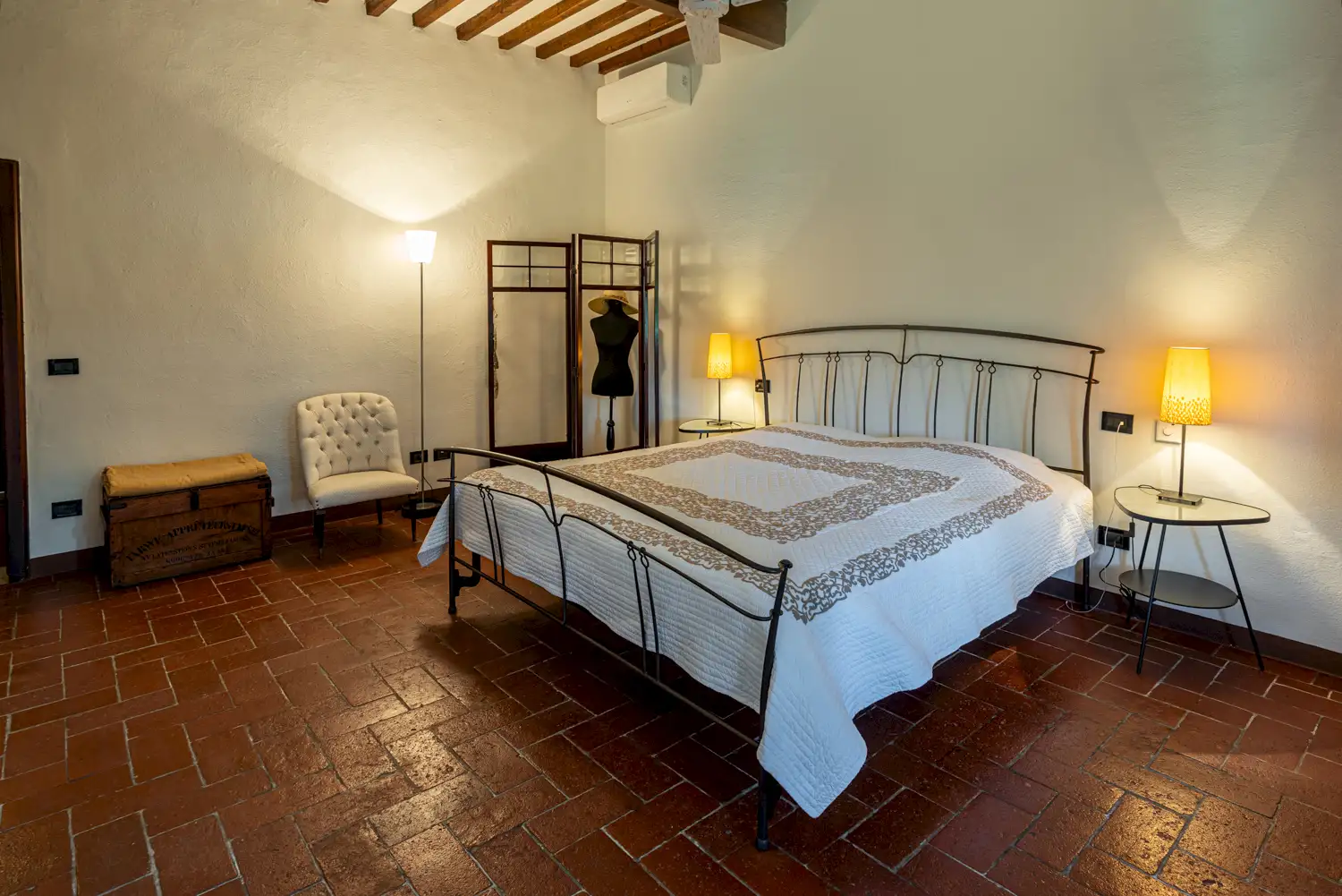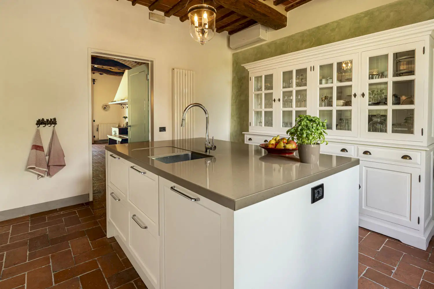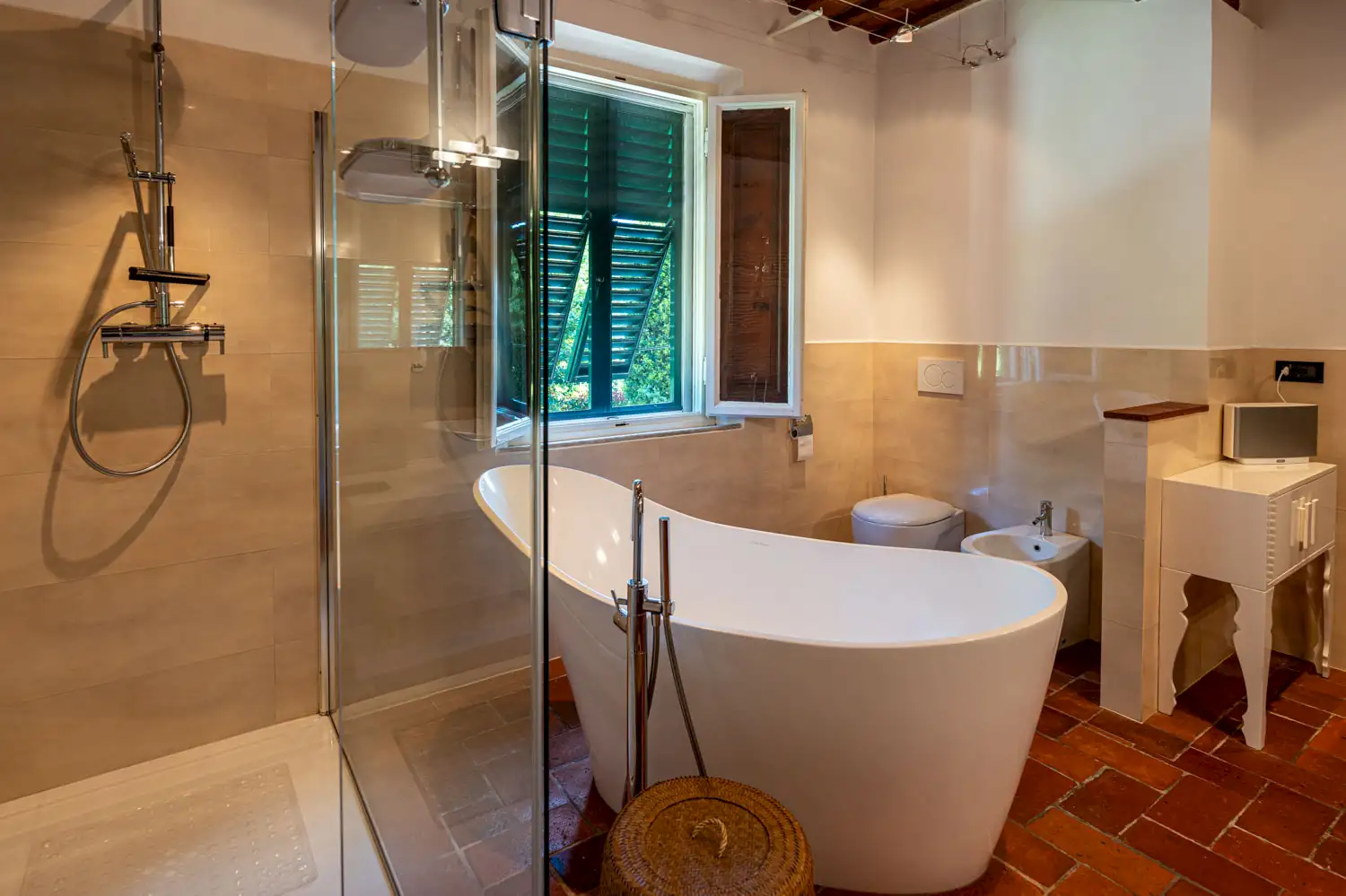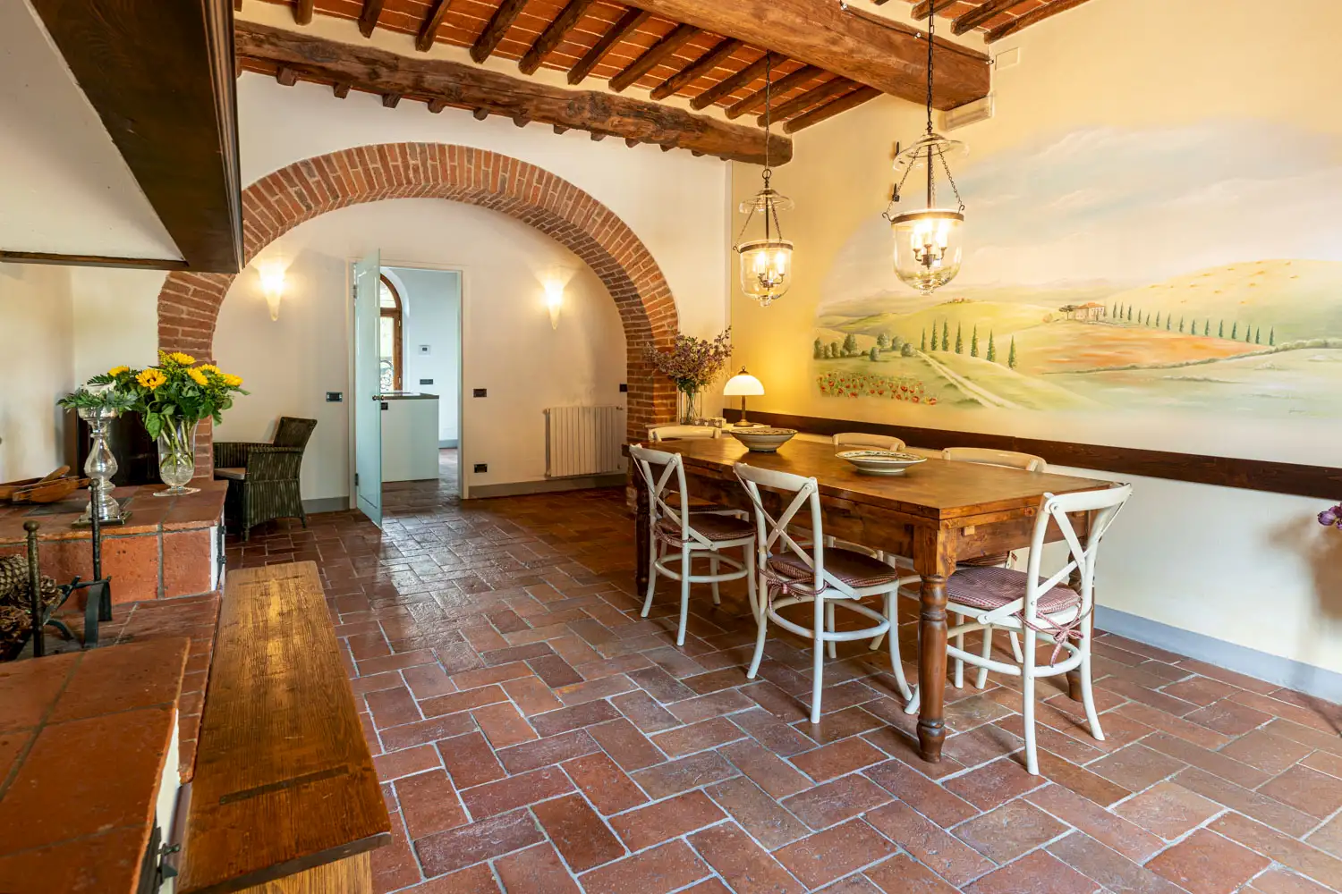 The Villa is based in a quiet area near the town of Orentano. The property is accessed via a beautiful driveway of common cypress trees shared with the other half of the house. Once in front of the house, each property has its own gate that separates the entrances to each private premises. The construction of a swimming pool is allowed, to make Villa Fontine an even more unique place to stay.