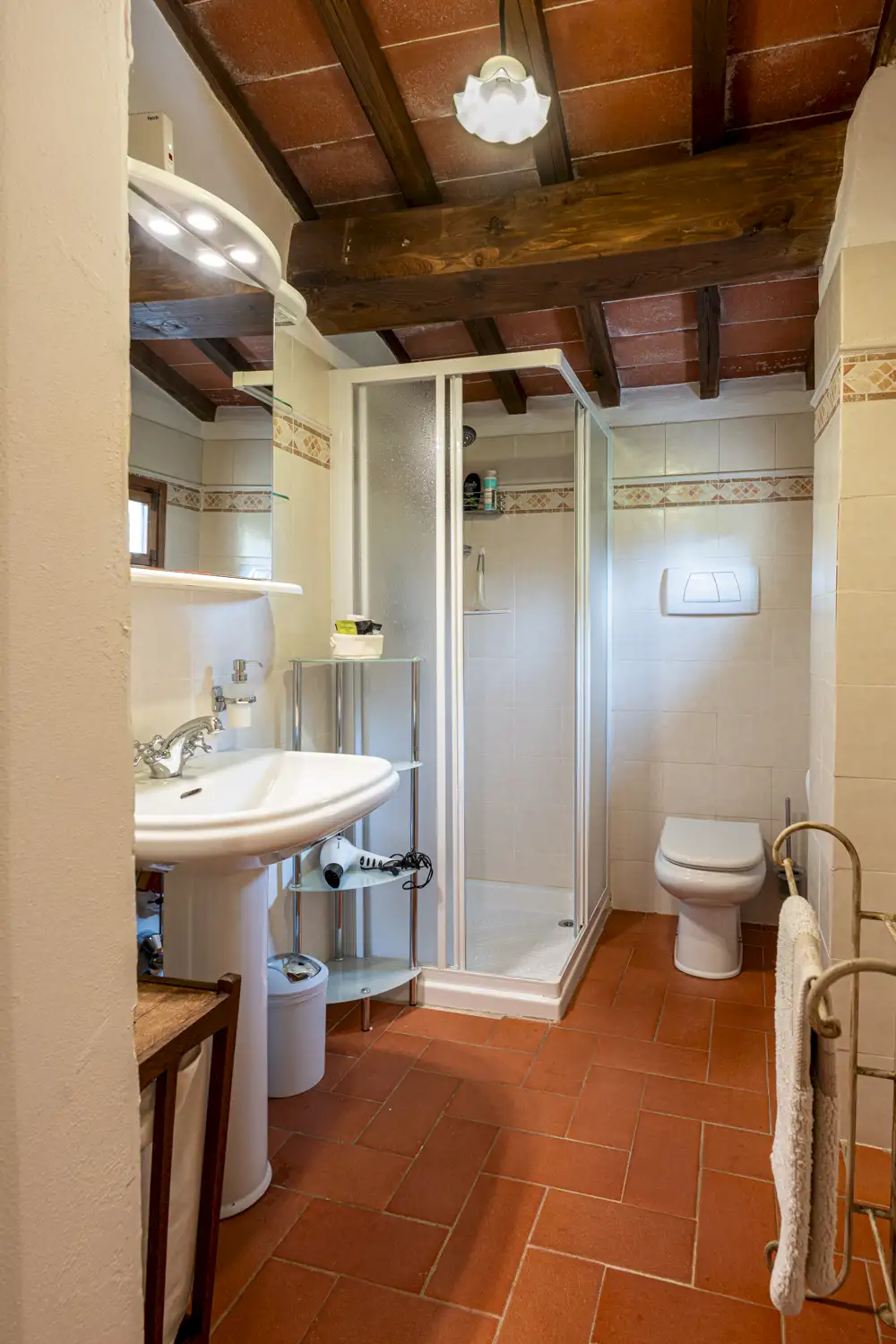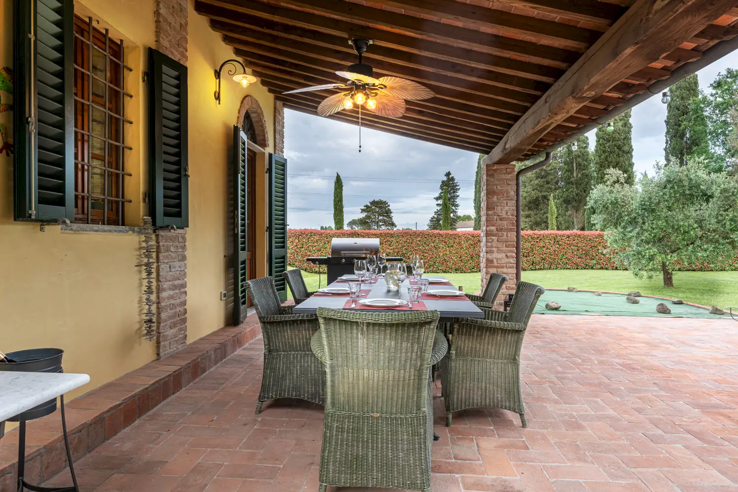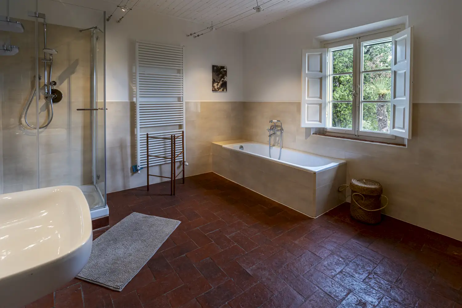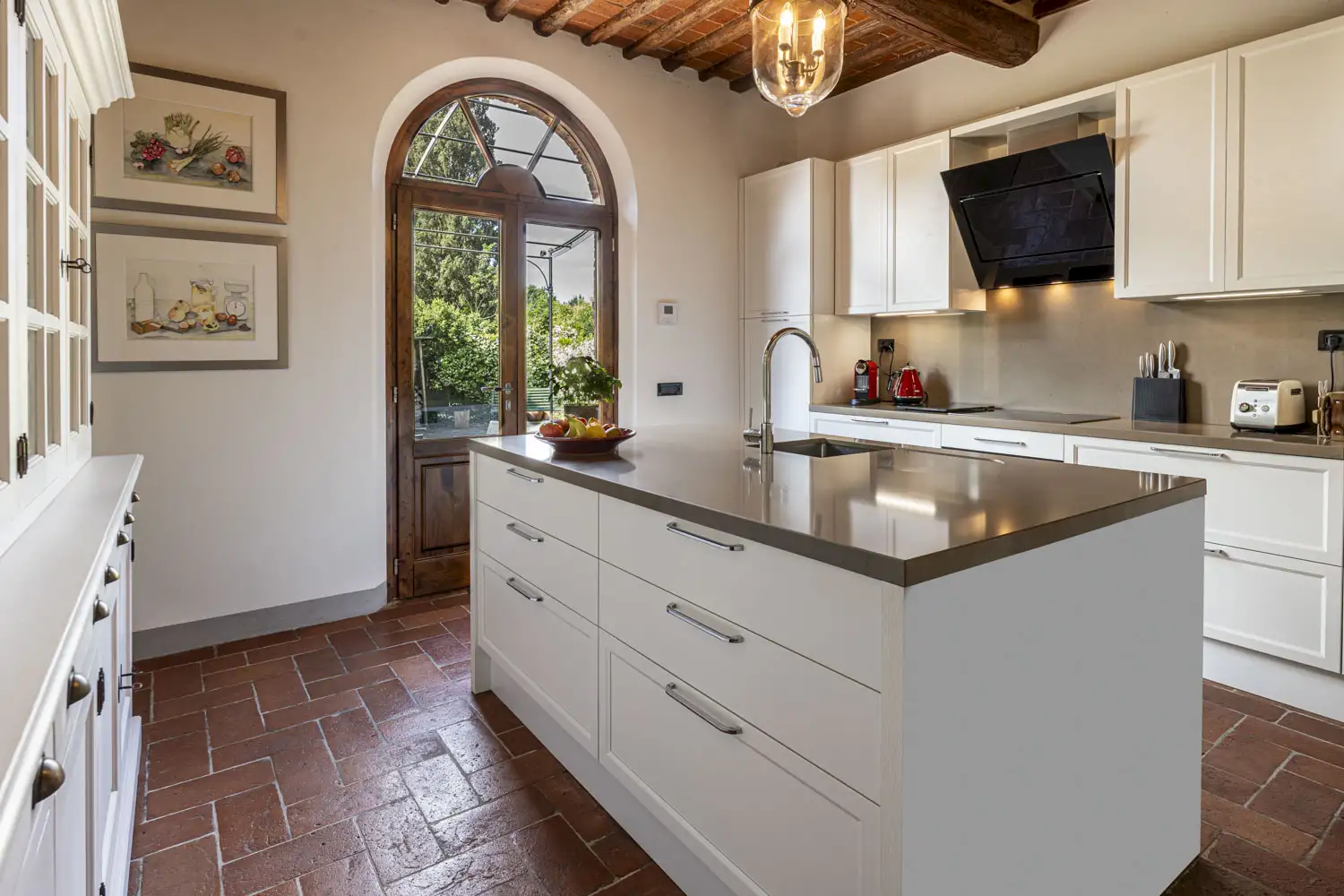 The Villa is based in a quiet area near the town of Orentano. The property is accessed via a beautiful driveway of common cypress trees shared with the other half of the house. Once in front of the house, each property has its own gate that separates the entrances to each private premises. The construction of a swimming pool is allowed, to make Villa Fontine an even more unique place to stay.